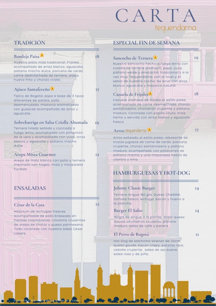 En Tequendama reinterpretamos la cocina colombiana con respeto por la tradición y una mirada moderna. Nuestra carta combina ingredientes locales con técnicas contemporáneas para ofrecer una experiencia culinaria auténtica, emocional y sorprendente.